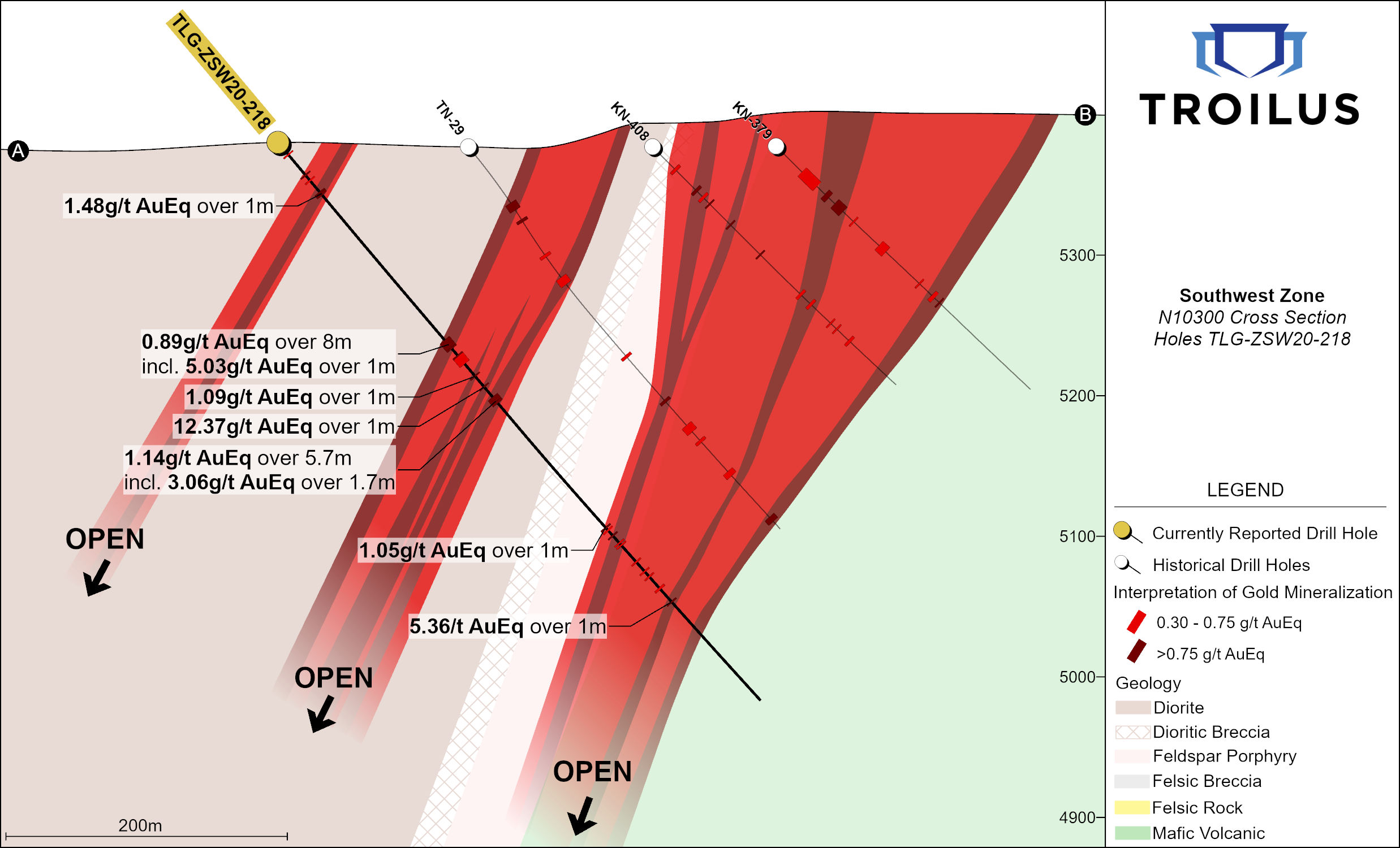 Figure 1: Longitudinal Section of the Main Mineral Zones & Near-Term Targets at Troilus