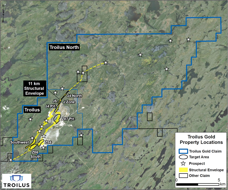 “The acquisition of Troilus North adds a significant strategic land position and focuses our 2019 exploration drilling on extending the J Zone to the Northeast” said Michael Timmins, SVP Corporate Development at Troilus. “Our new multi-million ounce resource, several mineralized outcrops, positive channel sampling and high-grade boulder occurrences help define what amounts to over 10km of surface mineralization (Table 1).”