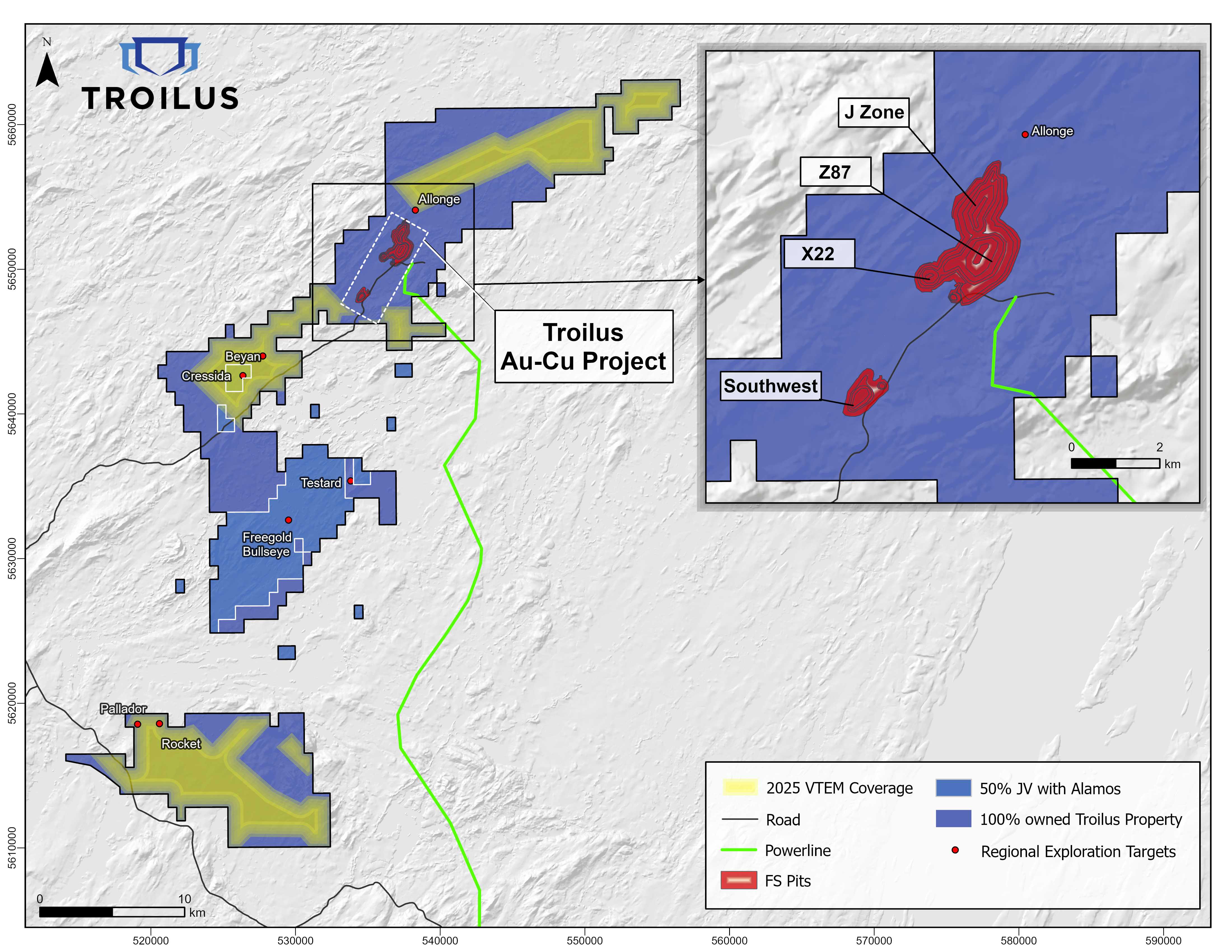 February 4, 2025, Montreal, Quebec – Troilus Gold Corp. (“Troilus” or the “Company”, TSX: TLG; OTCQX: CHXMF; FSE: CM5R) is pleased to announce the launch of its 2025 exploration program at the Troilus Copper-Gold Project (the “Project”) in north-central Quebec, Canada. This year’s program is designed to advance drilling and further develop high-priority targets to explore resource growth opportunities within and along the existing mineralized corridor. In addition to targeted drilling, the program will incorporate advanced geophysical surveys to refine exploration models and prioritize high-potential zones for resource expansion.