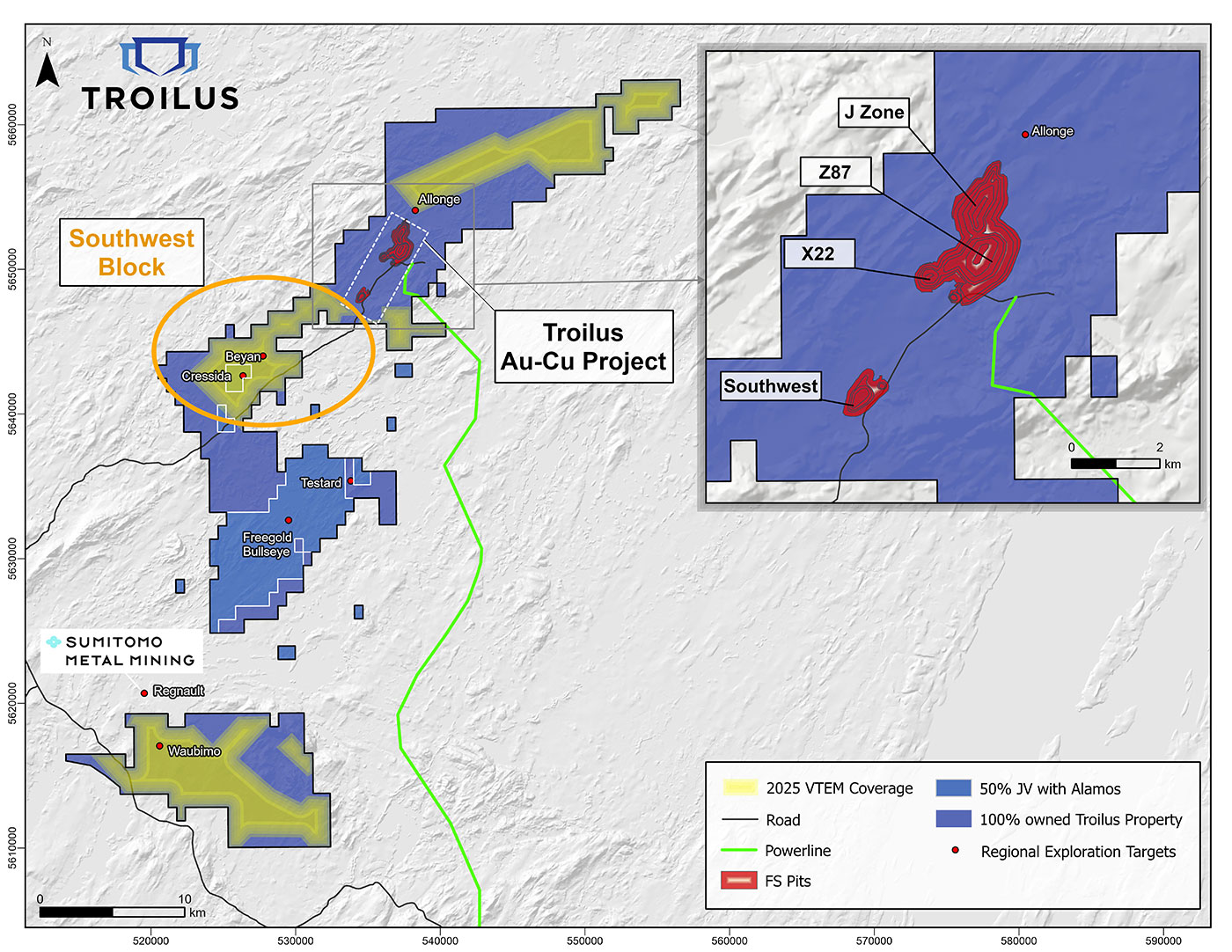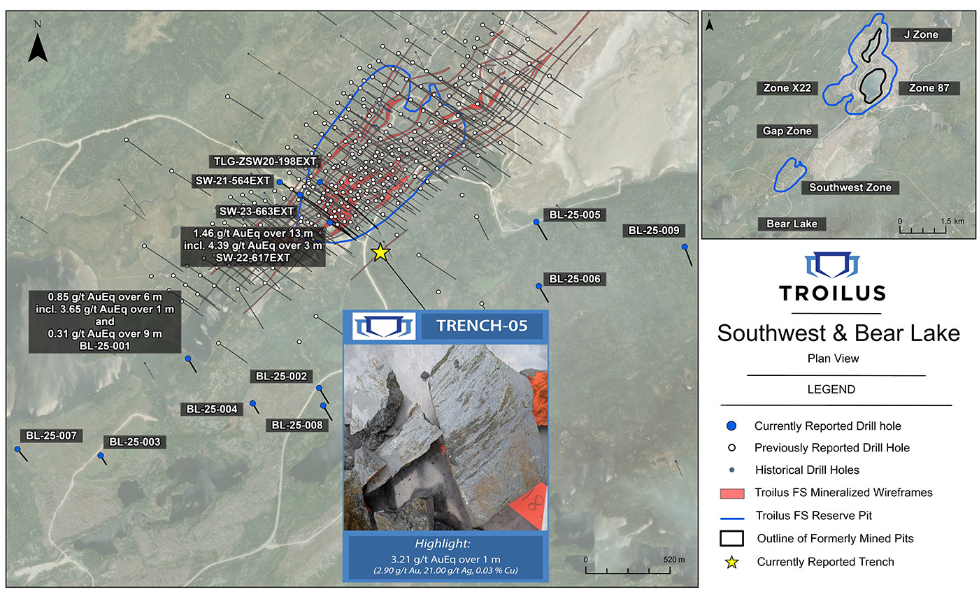 Justin Reid, CEO of Troilus, commented, “The 2025 exploration program continued to advance our geological understanding of the Troilus property. The work completed in the program confirmed additional high-grade mineralization adjacent to the Southwest pit, outlined a new mineralized trend at Bear Lake, and returned strong intercepts within areas planned for early mining. We’ve continued to see opportunities to further refine near-mine targets and evaluate additional prospective zones across the property, which have been incorporated into this year’s upcoming exploration program. With the Project moving through key development milestones toward a construction decision, the results from the 2025 exploration program have reinforced our confidence in the resource base and highlight the continued upside within the Troilus system.”